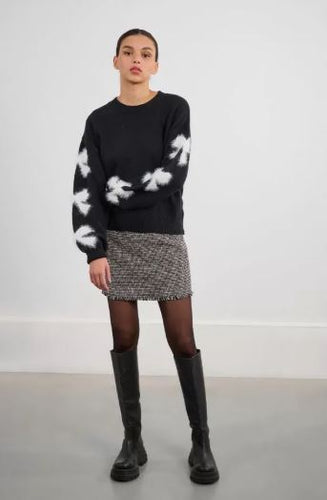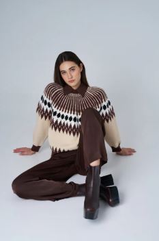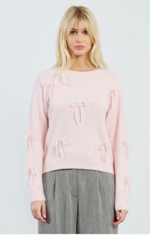BLU/WHT LS VNECK BUBBLE BLOUSE